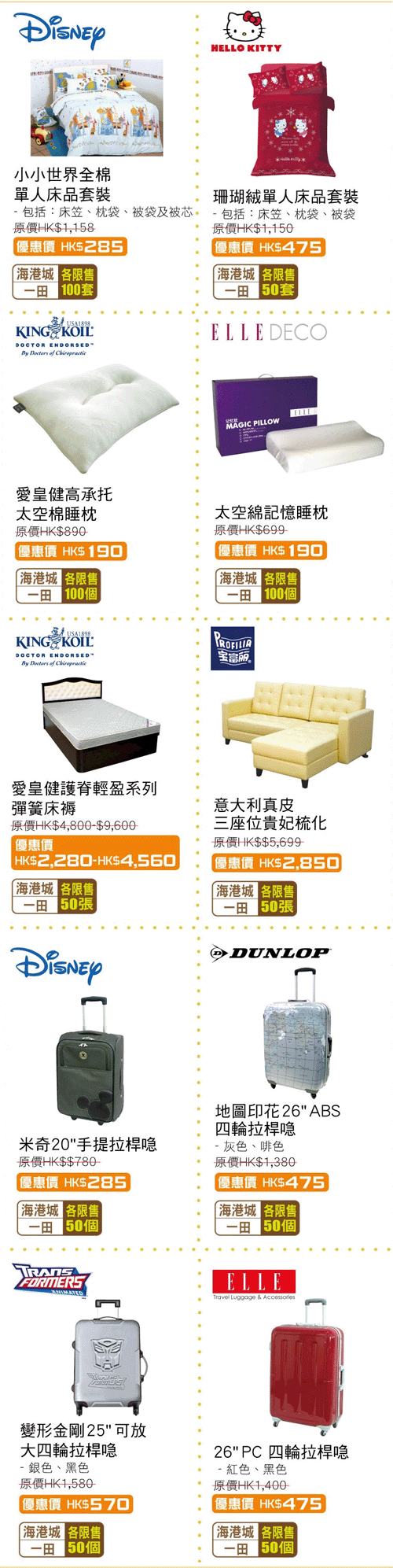 - 優質床品及行李用品展銷 低至28折^* (推廣期至2009年7月14日)