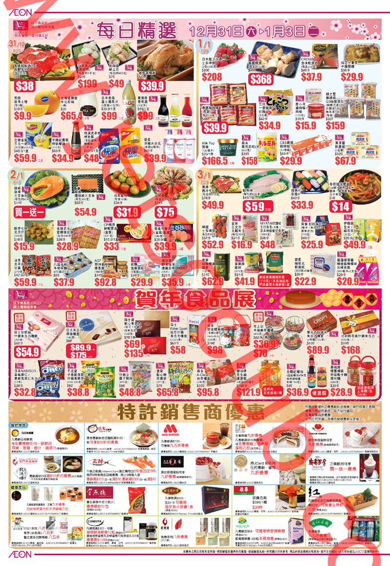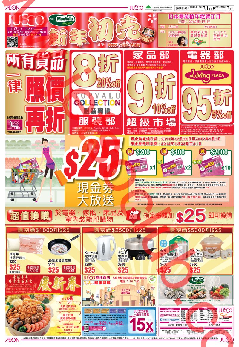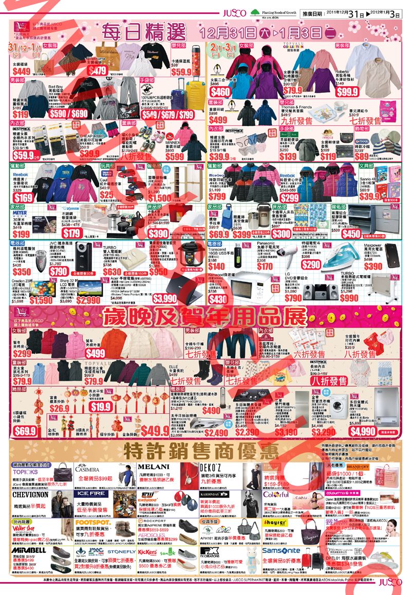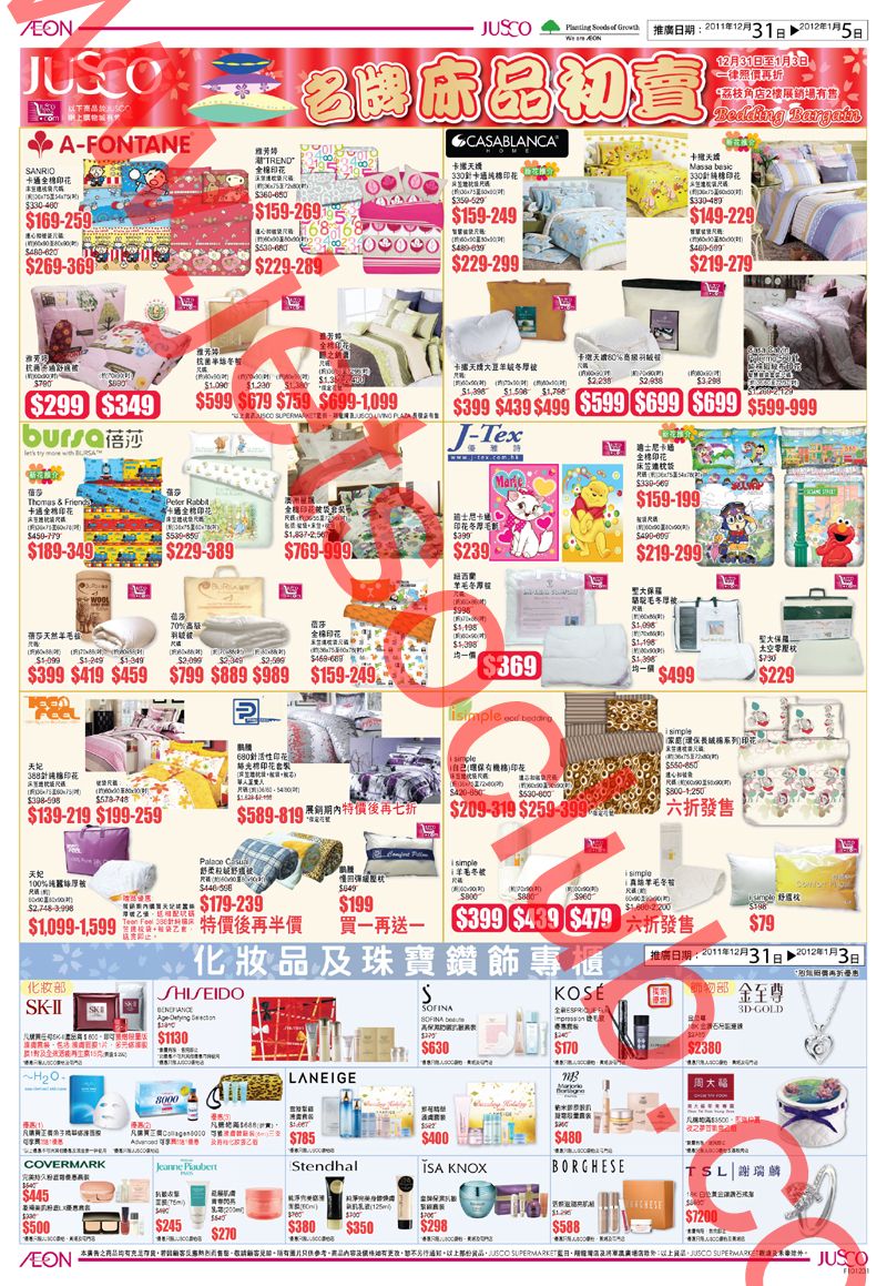 JUSCO:新年初賣(31/12-3/1)+ 名牌床品初賣(31/12-5/1)