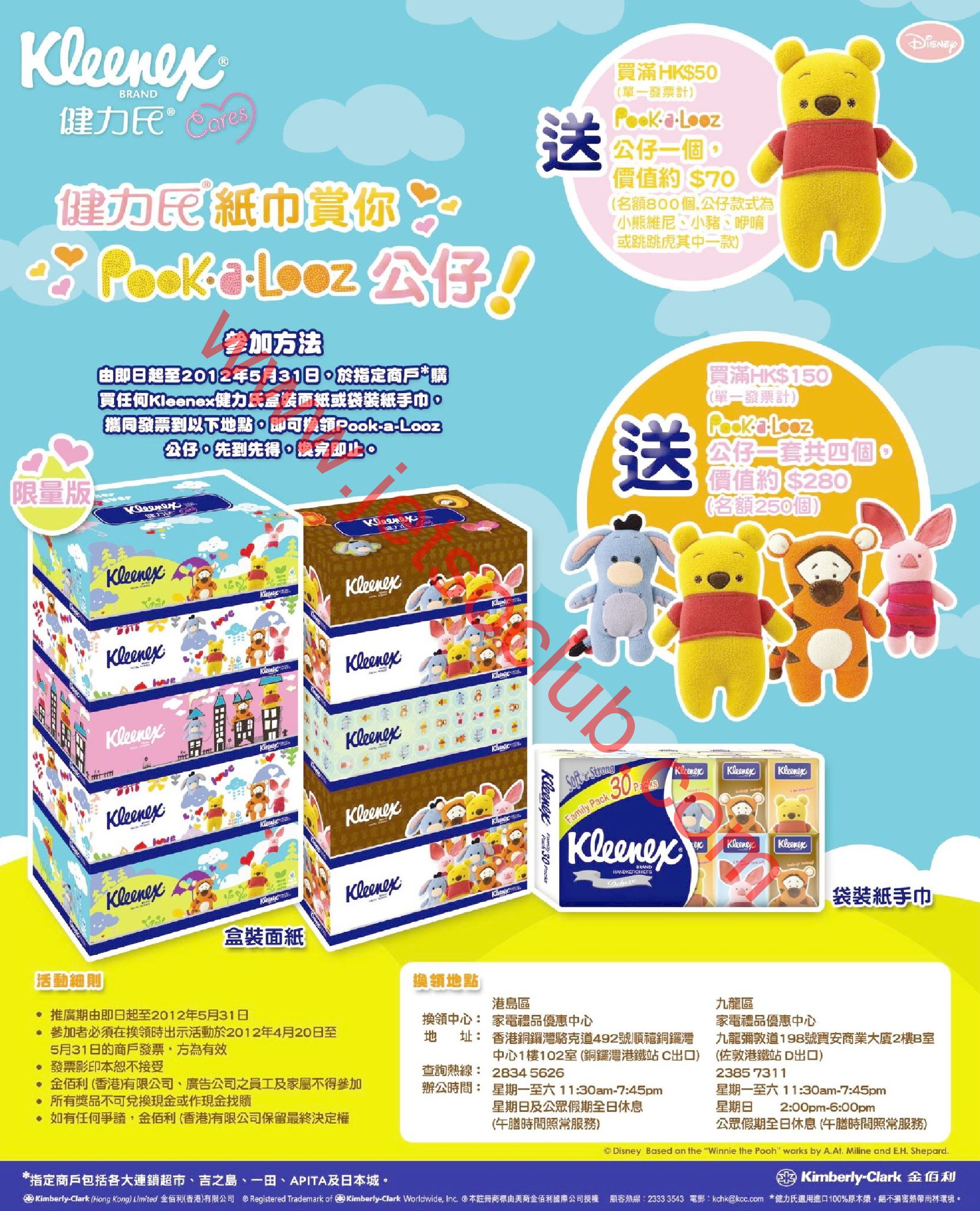 購買Kleenex紙巾 送Pook-a-Looz公仔(至31/5)