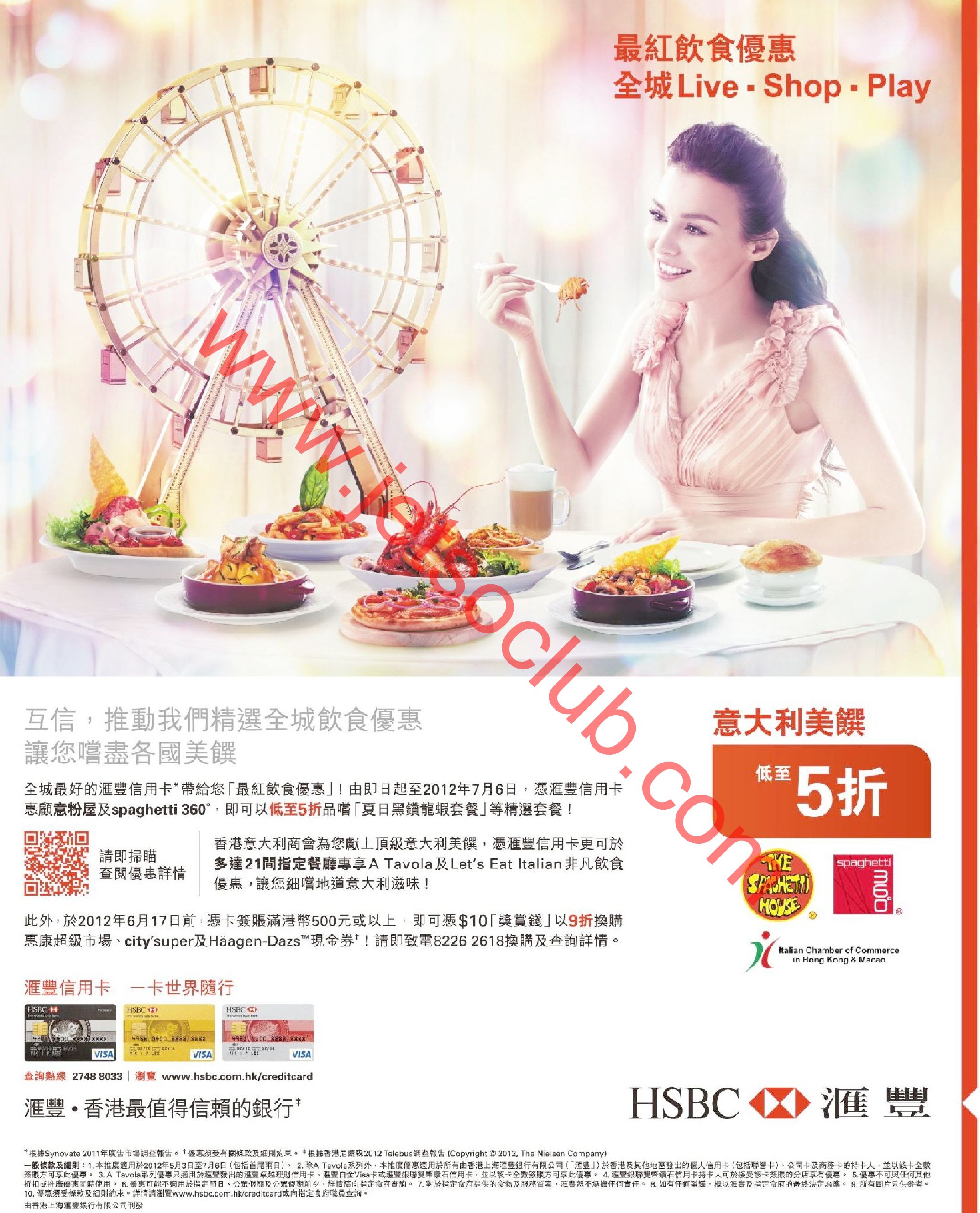 匯豐信用卡:意粉屋及spaghetti360套餐 低至5折 及於21間意大利餐廳專享飲食優惠(至6/7)