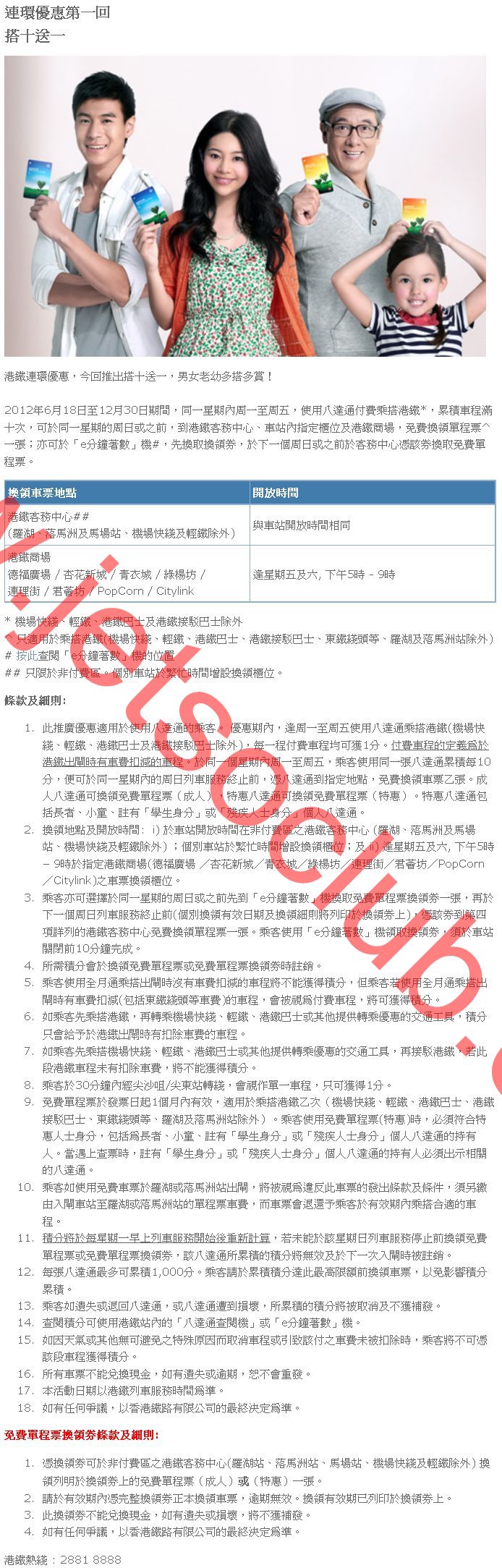 港鐵:搭十送一(18/6-30/12)