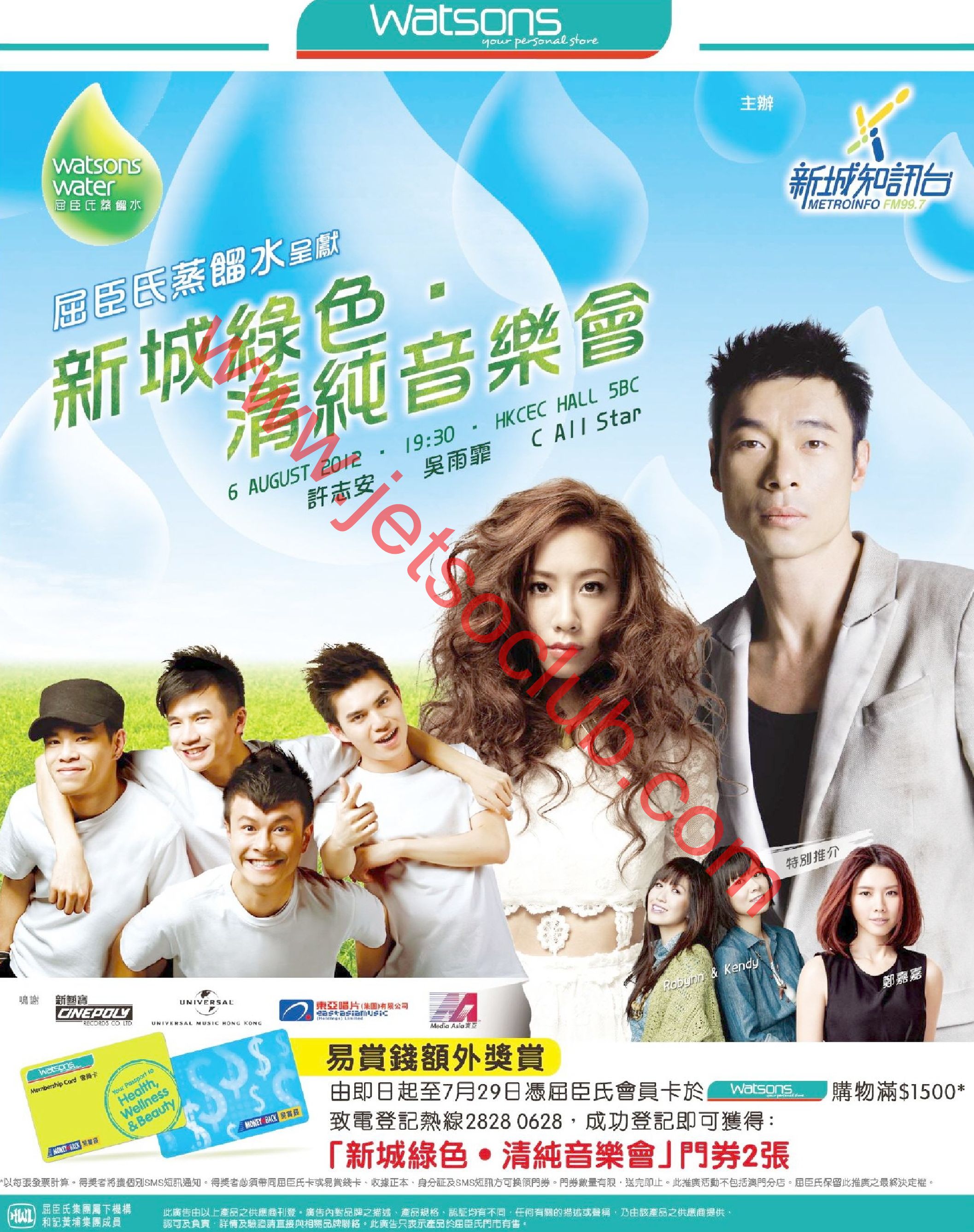 屈臣氏:購物滿$1500 送『新城綠色·清純音樂會』門券2張(至29/7)