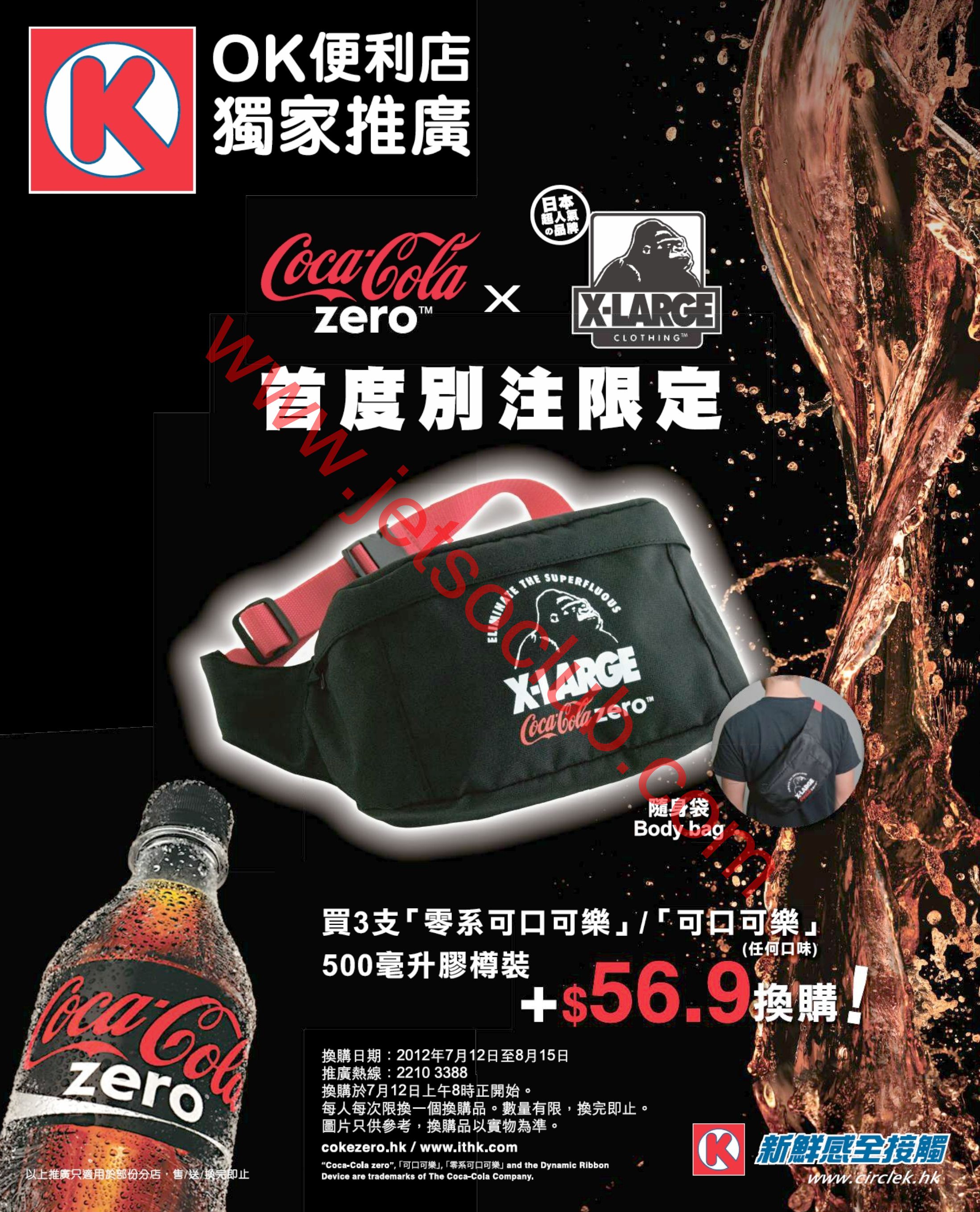 OK便利店:+$56.6換購CocaCola zero x X-LARGE首度別注限定隨身袋(12/7-15/8)