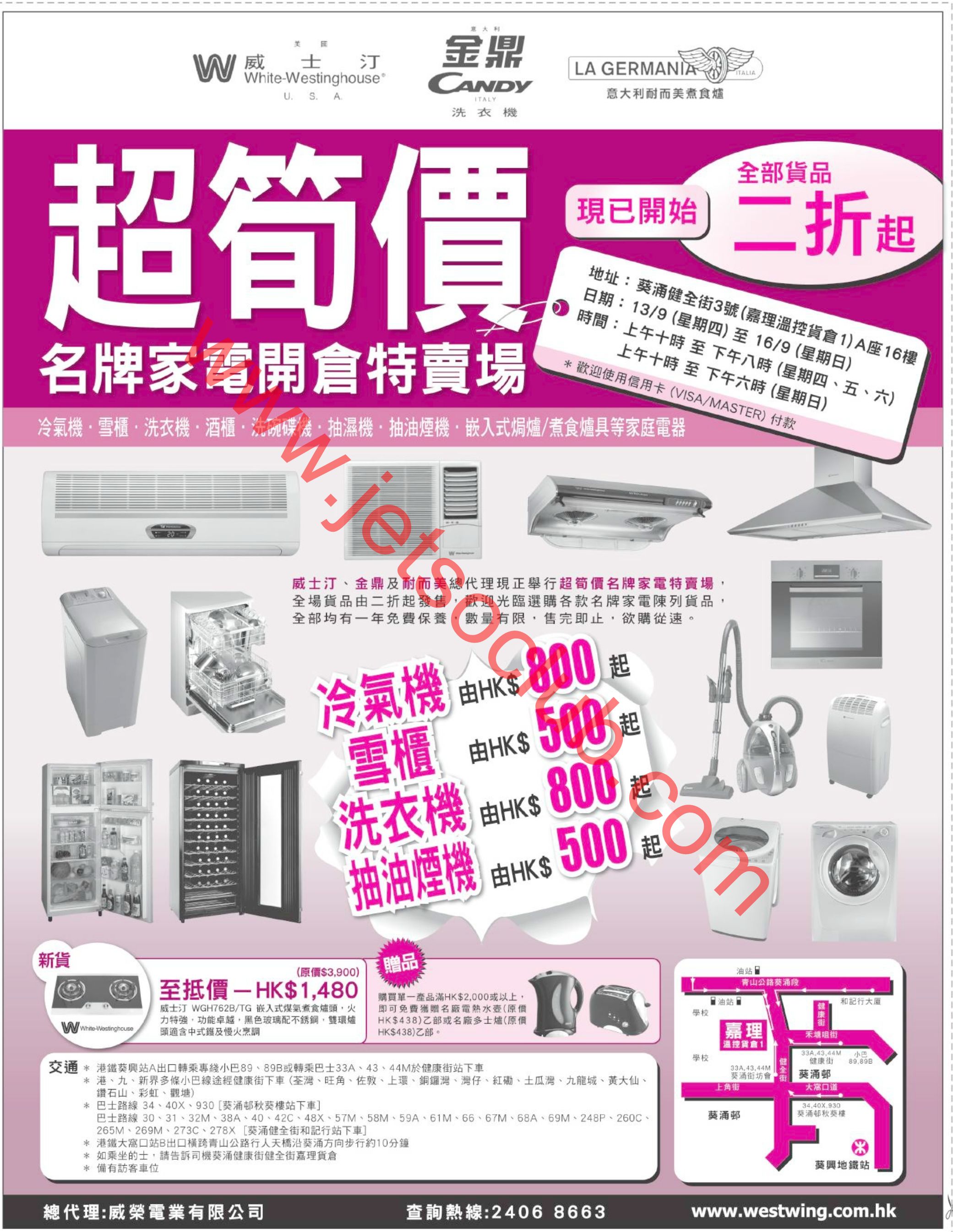 名牌家電開倉特賣場 全部貨品2折起(13-16/9)