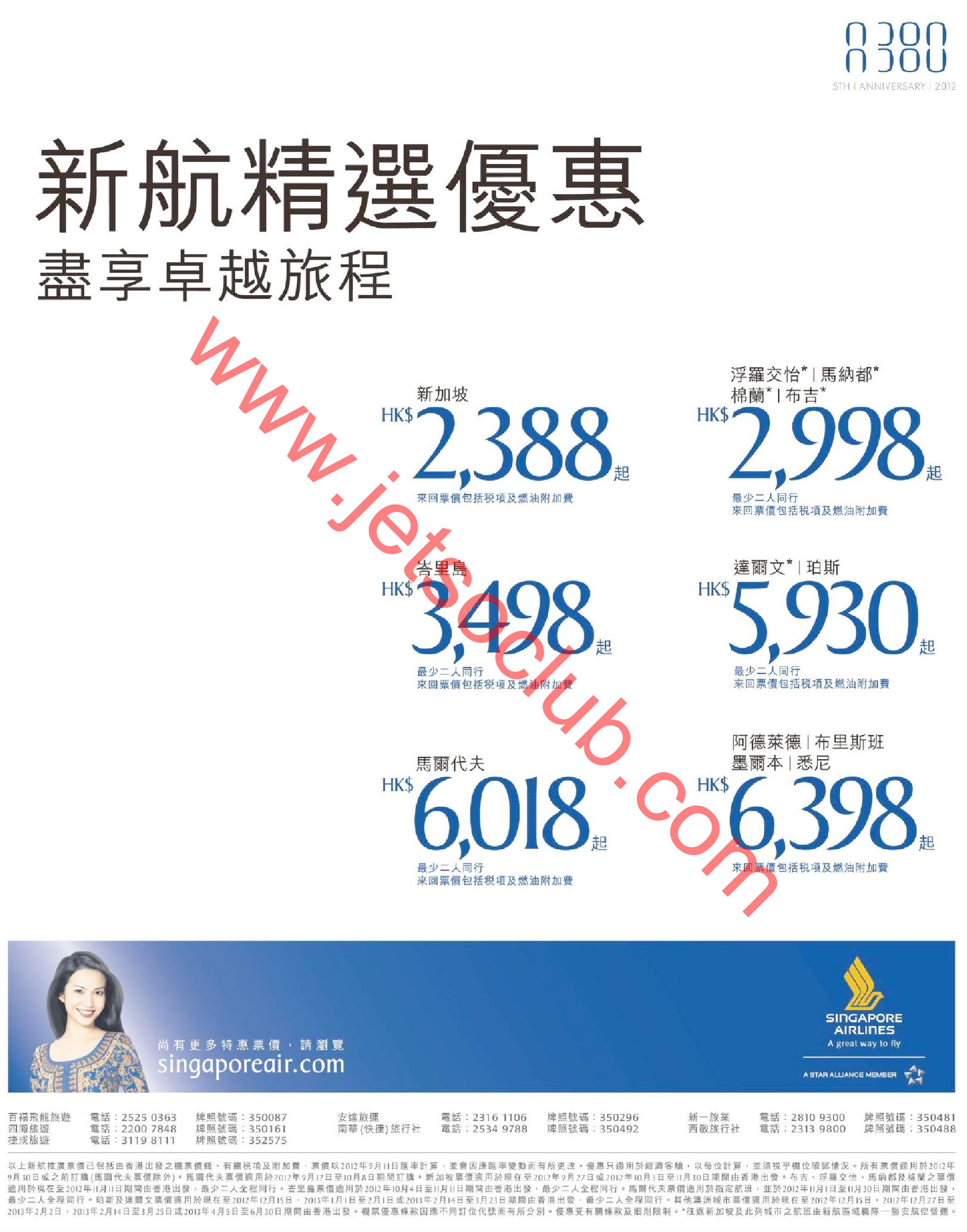 新航:來回機票全包 新加坡$2388 峇厘島$3498 澳洲$5930(訂購至30/9)