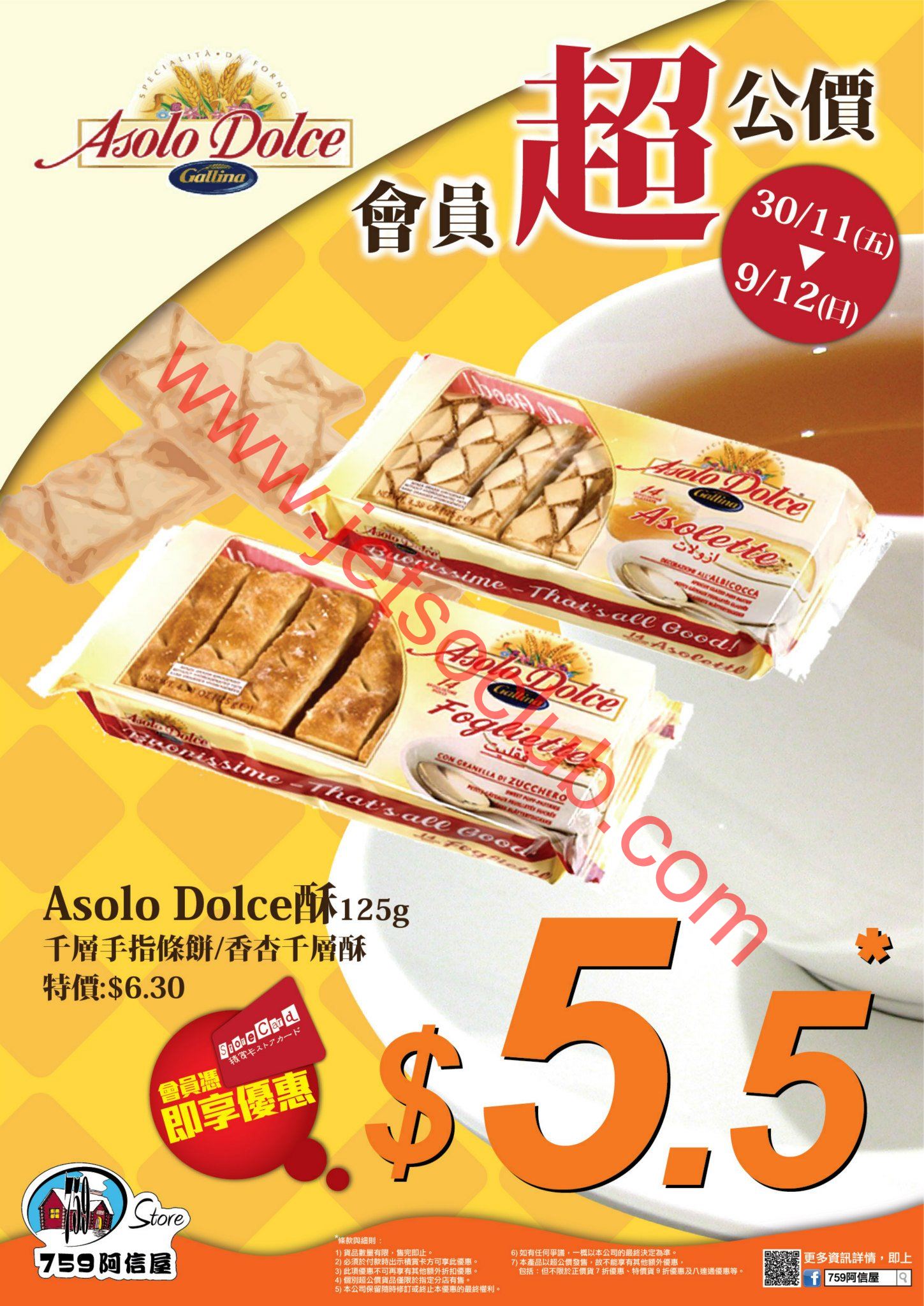 759 阿信屋:Asolo Dolce 酥$5.5 脆曲奇$10.5(30/11-9/12)/ BestPlanet 本場讃岐烏冬$26.5