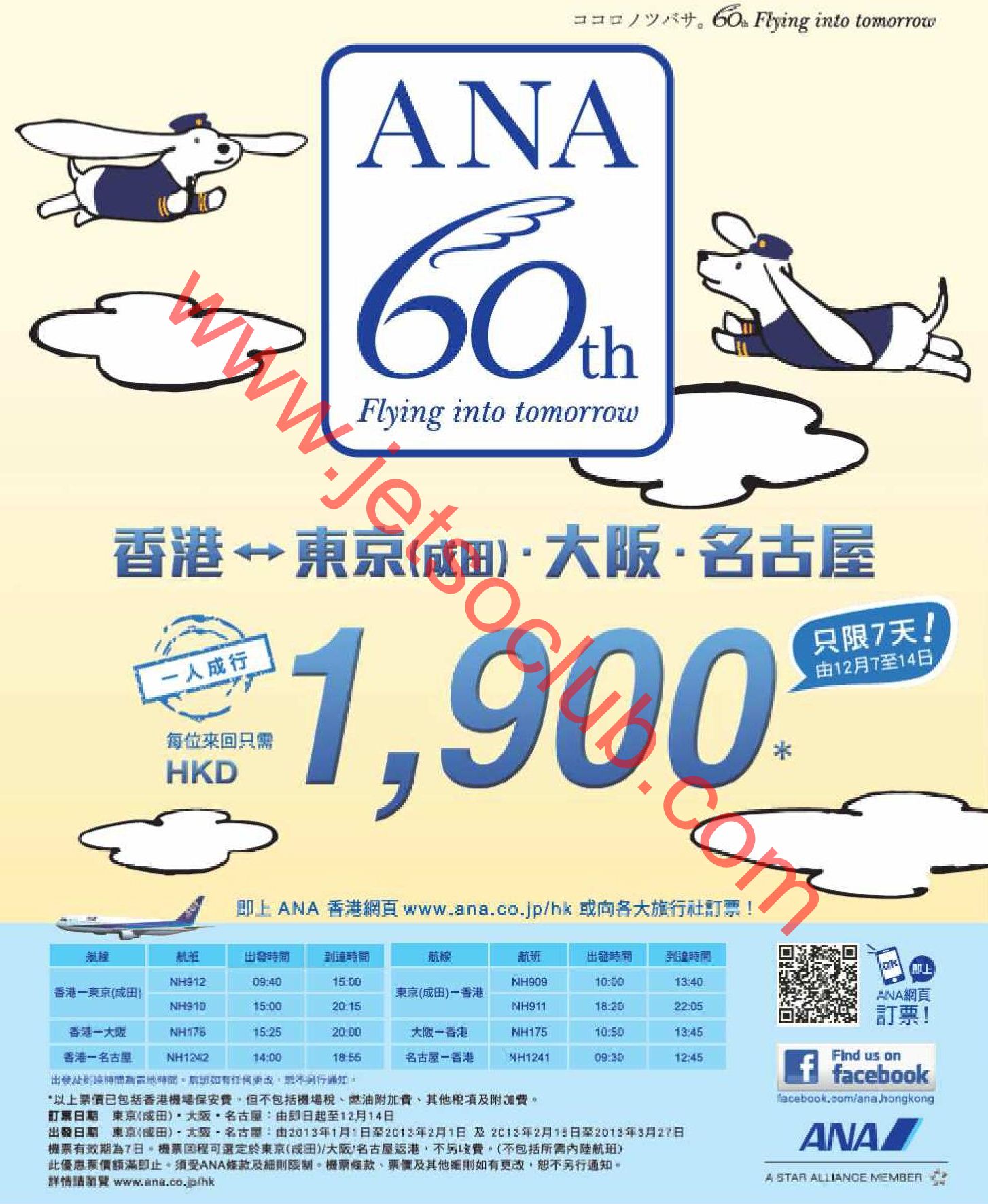 ANA:日本來回機票 $1900(訂購:7-14/12)