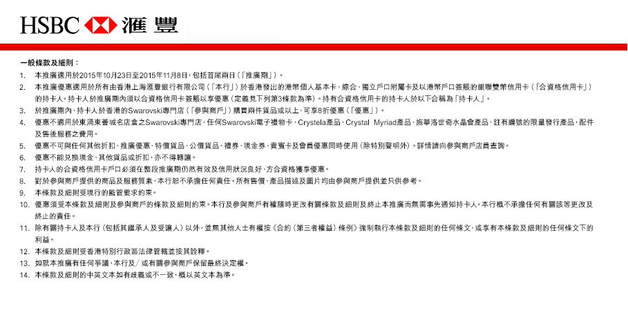 匯豐信用卡:Swarovski 8折優惠(至8/11)